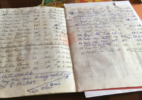 | Ông Nguyễn Đình Tú bồi hồi khi kể về con gái và đang xem lại những quyển sổ ghi chép về người hiến tặng giác mạc. |