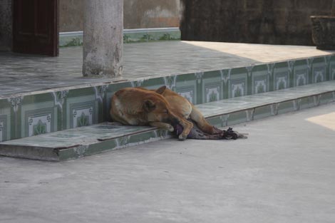 Mà đúng là không thấy thật. Có thể thấy gà, vịt, trâu, lợn, bò nhưng tuyệt nhiên một bóng chó ngoài ngõ cũng chẳng thấy. Nếu chẳng may có con chó nào từ xã khác lảng vảng quanh đây sẽ bị người dân xua đuổi như xua đuổi một thứ tà ma. Thậm chí, không may mắn, con chó đó sẽ bị đánh chết.