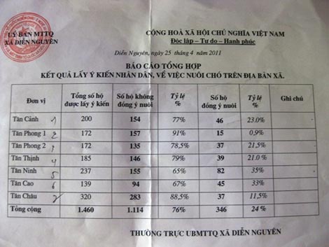 | Kết quả của đợt lấy ý kiến toàn dân về việc nuôi chó. |