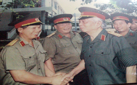 | Thiếu tướng Nguyễn Ngọc Doanh (phải) may mắn được gặp đại tướng Võ Nguyên Giáp. |