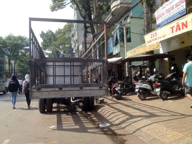 | Xe tải đậu dưới lòng đường, xe máy “bao chiếm” vỉa hè đường Lê Hồng Phong. |