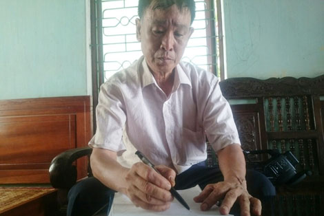 | Ông Hồ Đức Thắng viết thư gửi đồng đội Hồ Văn Quang. |
