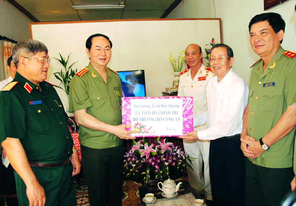 | Bộ trưởng Trần Đại Quang đến thăm, chúc mừng Đại tá Trần Cao Giảng nhân dịp ông được Nhà nước phong tặng danh hiệu Anh hùng LLVTND. |