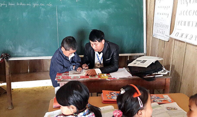 Anh bảo: “Các thầy cắm bản như mình đều hiểu và biết tiếng một số dân tộc ở đây. Điều này quan trọng lắm, vì chỉ khi hiểu văn hóa dân tộc thì lúc tìm đến động viên con em họ tới trường mới hiệu quả và cũng không làm phật ý bà con. Vào mỗi dịp vụ mùa thu hoạch thảo quả, do gia đình bận rộn nên các em hay bỏ học để phụ giúp. Đó cũng là thời điểm các thầy giáo như bọn mình năng xuống bản nhiều hơn, vừa giúp bà con lại động viên để các em tới trường, bài học không bị chậm lại…