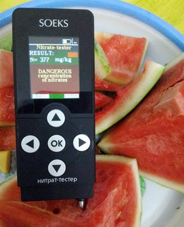 Chị Đào Thu Hương, ở quận Thanh Xuân, Hà Nội phản ánh: “Chồng tôi khi sang Nga công tác cũng mua chiếc máy đo hàm lượng Nitrate hiệu Soeks. Mang về Việt Nam đo thực phẩm, hầu hết đều vượt ngưỡng cho phép. Có lần mua quả dưa hấu về, sử dụng máy thử này, tôi hốt hoảng khi thấy chỉ số cho phép của nó là 60 mà kết quả đo Nitrate gần 400. Thậm chí tôi mua dưa chuột ở cửa hàng tiện ích, giới thiệu là dưa sạch với giá đắt gấp 3 lần ngoại chợ, chỉ số cho phép là 150, về đo thì chỉ số nhận được là 280. Nghe ở Hà Đông có hàng thịt lợn sạch, không nuôi bằng chất cấm, không cám công nghiệp, tôi hăm hở vào mua cũng nhận được kết quả hoảng luôn: Chỉ số giới hạn cho phép là 200, dùng máy đo thì chỉ số vọt lên 700”.