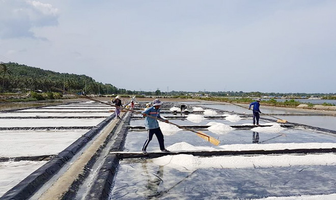 Diêm dân Nguyễn Thị Duyên chia sẻ thêm: “Cha truyền con nối thành duyên nghiệp mưu sinh chứ nghề làm muối cực hơn rất nhiều so với nghề nông. Kết thúc mùa vụ phải xới đất, đầm nén lại mặt ô thửa ruông muối bằng phẳng, đào đắp lại bờ ruộng, kênh dẫn nước biển. Nghề này chỉ sản xuất trong những tháng nắng. Nắng càng gay gắt, muối càng nhanh kết tinh và càng thơm tinh khiết, nhưng vị mặn mồ hôi diêm dân cũng càng thêm mặn chát”.