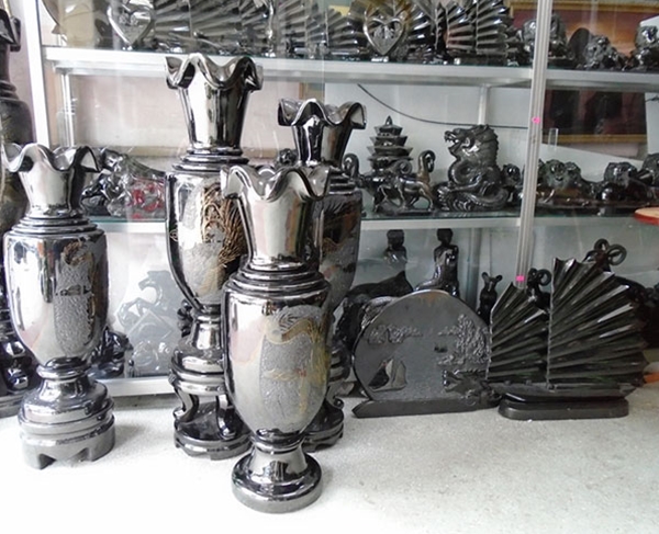 | Một số sản phẩm điêu khắc than mỹ nghệ. |