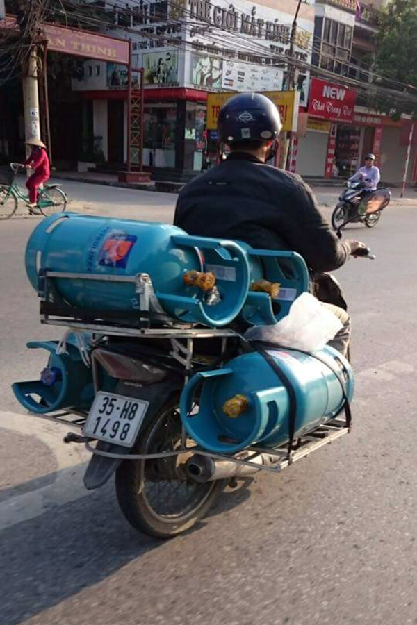 Hoạt động kinh doanh gas trái phép diễn ra hết sức công khai. Mới đây nhất trên địa bàn tỉnh Ninh Bình, nhân viên thị trường của Gas Petrolimex đã phát hiện một trường hợp chở sau xe máy đến 4 bình gas mang nhãn hiệu của mình nhưng van thì lại không phải.