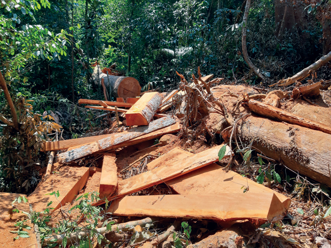 Khi tận mắt chứng kiến hàng trăm cây gỗ lim, sến, dổi... đường kính từ 1-1,5m bị “lâm tặc” đốn hạ chúng tôi không khỏi xót xa. Nhiều cây gỗ bị xẻ ra từng phách nằm rải rác khắp bờ sông chưa kịp chuyển đi, một số nơi “lâm tặc” đã lấy hết số gỗ chỉ để lại hiện trường những gốc cây trơ trọi.