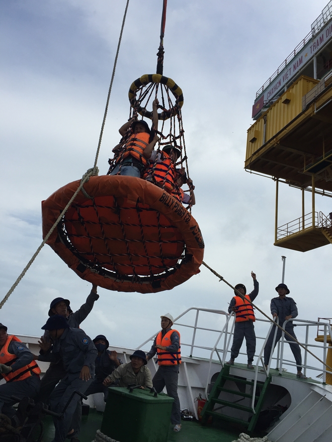 Ở nhà giàn DK1/21, Chỉ huy trưởng Nhà giàn là Trung tá Dương Văn Hoan, quê ở Hà Nam cùng 8 cán bộ chiến sĩ Nhà giàn DK1/21 ra đón Đoàn công tác chúng tôi bằng những cái bắt tay, những cái ôm thật chặt, nồng ấm tình cảm như những người thân trong gia đình lâu ngày trở về.