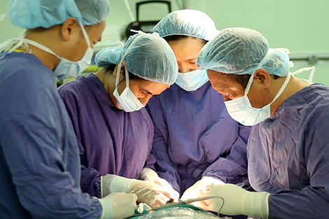 | GS Trần Thiết Sơn (ngoài cùng bên phải) tiến hành ca phẫu thuật cho ông Sứ |