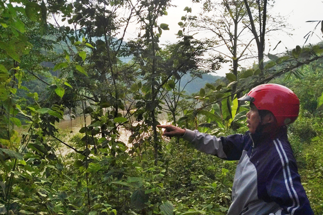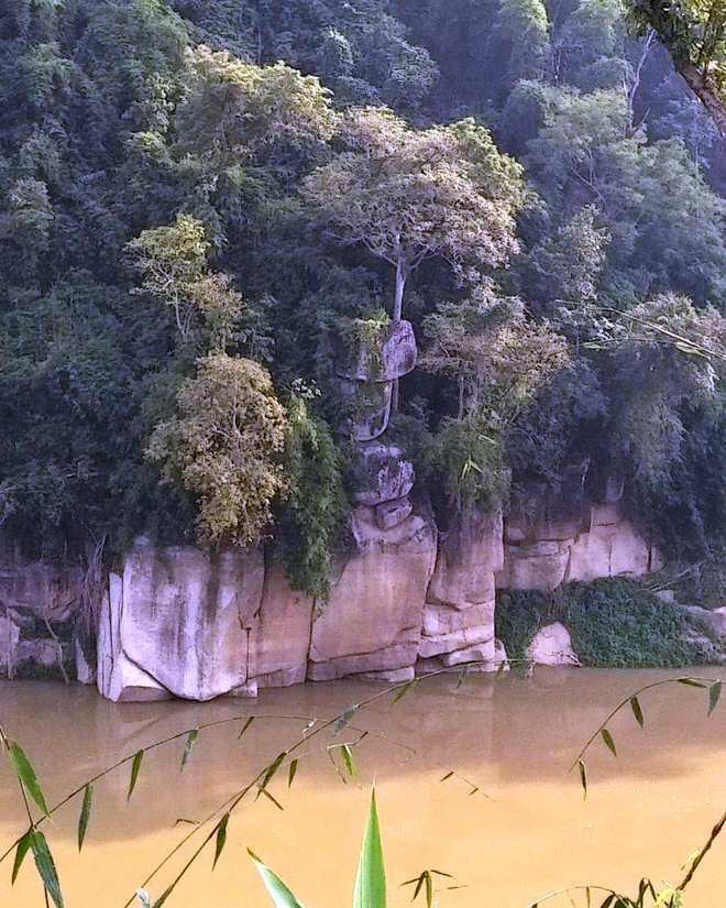 Thấy anh Sâm chạy xe theo tả ngạn, tôi khẽ nhắc anh những khối đá nằm bên hữu ngạn. Anh Sâm lắc đầu: "Nhìn vậy thôi, nhưng tiếp cận nó rất khó khăn. Xung quanh đó không có nhà dân, không có đường đi xe máy. Tôi đi thăm rừng lần nào cũng phải gửi xe máy lại mà trèo bộ hàng giờ liền. Đi bên này, nếu gặp thuyền bè thì ta nhờ họ chở sang".