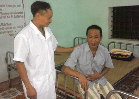 Bác sĩ Hưng động viên phạm nhân yên tâm điều trị bệnh.