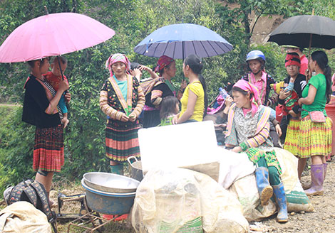 Đứng bên vệ đường với túi quần áo, bà Sồng Thị Chừ (70 tuổi) hai chân lấm lem bùn đất vì dép rơi mất lúc nào không biết. Bà không nói được tiếng Kinh, anh con rể phải giúp chúng tôi phiên dịch. Sáng nay anh mới hay tin nhà mẹ vợ bị nước lũ vùi lấp nên đã chạy từ bản Ka Sin Chải sang đây để giúp đỡ. Trong lúc chạy lũ, bà Chừ chỉ kịp mang chăn, quần áo, còn gạo và các tài sản khác không mang được. Ruộng lúa, nương ngô, gà, lợn, ao cá của gia đình bà đã trôi sạch theo dòng nước lũ. May có con trâu còn sống sót.