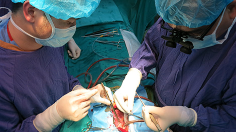 PGS.TS. Nguyễn Hữu Ước tiến hành ghép tim cho cháu Đạt.