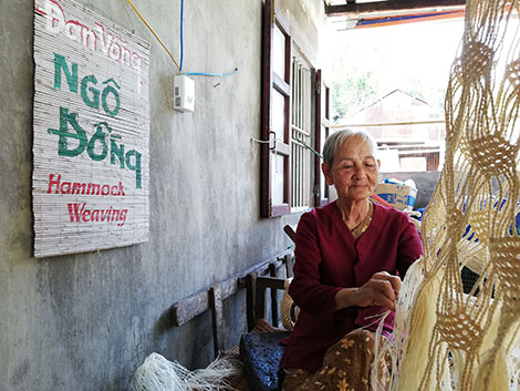 Bà lão Nguyễn Thị Quy (78 tuổi, thôn Bãi Ông, xã đảo Tân Hiệp, TP Hội An, Quảng Nam) ngồi đan võng trong căn nhà nhỏ, tỉ mẩn với từng mắt võng. Bà Quy nói võng ngô đồng từng được xem như một biểu tượng đặc trưng của người dân xứ đảo này.