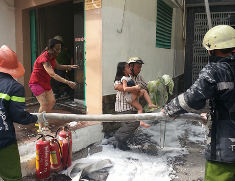 | Các nạn nhân trong vụ cháy nhà số 38 (đường 16, cư xá Lữ Gia, phường 15, quận 11, TP Hồ Chí Minh) được các trinh sát cứu sống. |