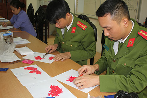 | Các cán bộ Giám định ma túy tổng hợp trong một vụ án. |
