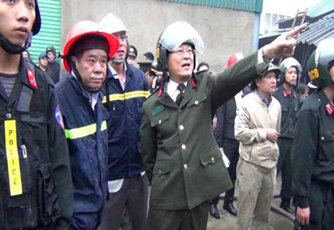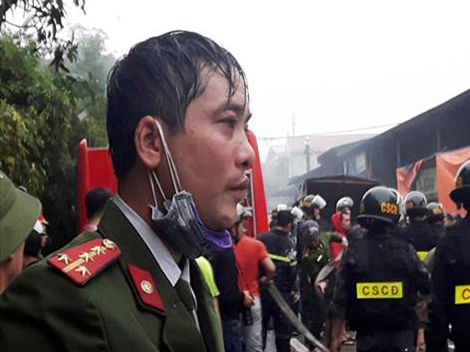 Đại tá Nguyễn Hữu Cầu - Giám đốc Công an Nghệ An trực tiếp chỉ đạo công tác chữa cháy, cứu hộ cứu nạn tại hiện trường.