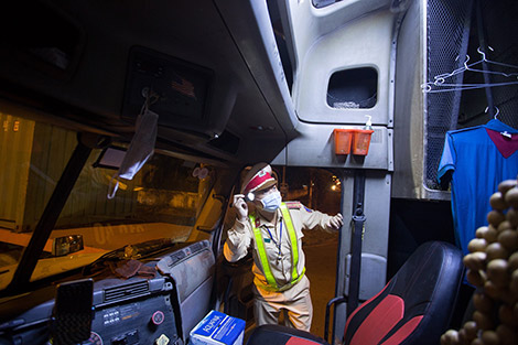 Mỗi người một việc, các thành viên trong đội CSGT dừng xe, hướng dẫn vào nơi đỗ, phối hợp với các ban ngành chức năng kiểm tra từng xe. Các đồng chí công an trong tổ thì hướng dẫn, kiểm tra thân nhiệt, những tổ kiểm soát quân sự của các đơn vị quân đội tăng cường phối hợp kiểm tra thân nhiệt, kiểm tra phương tiện, hướng dẫn kê khai thông tin dịch tễ, các thành viên của các đội tình quyện, dân quân tự vệ cũng giúp kiểm tra thân nhiệt, nhắc nhở giãn cách đúng quy định, hướng dẫn từng chút một cho những tài xế, phụ xe hoàn thành sớm nhất việc khai báo thông tin để tiện thời gian di chuyển.
