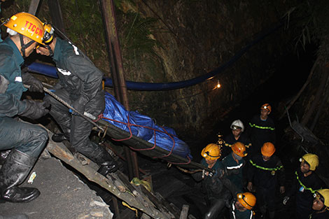 | Giải cứu nạn nhân vụ sập hầm lò ở Lỗ Sơn, Tân Lạc. |
