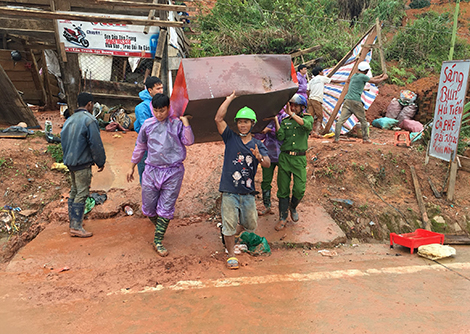 | Công an các tỉnh Tây Nguyên nỗ lực giúp dân khắc phục hậu quả sau mưa lũ. |