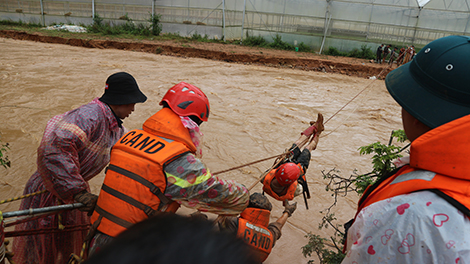 Thiếu tá Đoàn Mạnh Toàn, Phó Trưởng Phòng Cảnh sát PCCC-CNCH Công an tỉnh Lâm Đồng cho biết, tại hiện trường, các ca nô của lực lượng giải cứu dùng để tiếp cận người dân bị mắc kẹt bên kia sông đều không thực hiện được bởi nước chảy mạnh và xiết. Sau hơn 8 giờ đồng hồ vật lộn với mưa lớn, lũ dữ, lần lượt 41 người, trong đó có 7 trẻ em được đưa qua sông an toàn bằng hình thức đu dây cáp vượt sông. Đón nhận con gái mới hơn 1 tuổi được giải cứu thành công từ tay một chiến sĩ Cảnh sát PCCC-CNCH Công an tỉnh Lâm Đồng, người mẹ trẻ tên Hồng ôm chầm con vào lòng bật khóc vì xúc động, hạnh phúc.