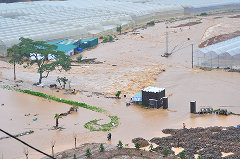 Ông Sơn cho biết, để khôi phục lại sản xuất, nhanh nhất cũng phải mất vài tháng. Tương tự, nông trại sản xuất của Công ty TNHH Đạ Nghịt cũng bị nước lũ từ hồ Đan Kia đổ về nhấn chìm, làm hư hại 3 ha nhà kính trang bị hệ điều hành tự động để sản xuất rau sạch. Ông Lê Tuấn (quản lý trang trại) cho biết, cách đây 2 năm cũng xảy ra lũ lớn nên nông trại đã nâng cao tường bao chắn nhưng năm nay lũ quá khủng khiếp, cuốn phăng tất cả.
