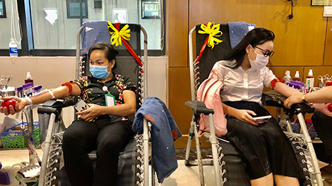 Đông đảo các bạn sinh viên Trường Đại học Mỏ - Địa chất và Học viện Tài chính, Đại học Y tế công cộng tham gia hiến máu. Đây không phải là lần đầu tiên đôi bạn Nguyễn Đức Thắng và Nguyễn Đình Thi - Khoa Công nghệ thông tin, Trường Đại học Mỏ - Địa chất cùng nhau đi hiến máu nhưng cảm giác vẫn không khỏi hồi hộp. Thắng bảo, dịp Trung thu này sẽ dành cho các em nhỏ món quà quý giá nhất, đó là bịch máu để nối dài sự sống cho các em, truyền cho các em nguồn năng lượng của tuổi trẻ.
