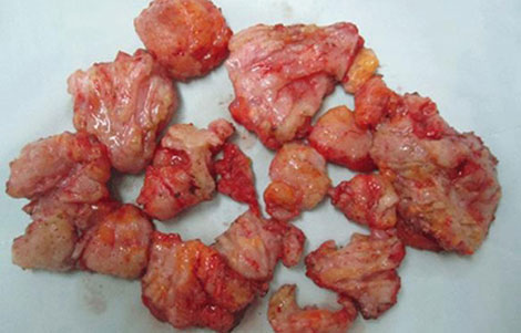 | Silicon vón thành cục lấy ra từ mông nam bệnh nhân. |