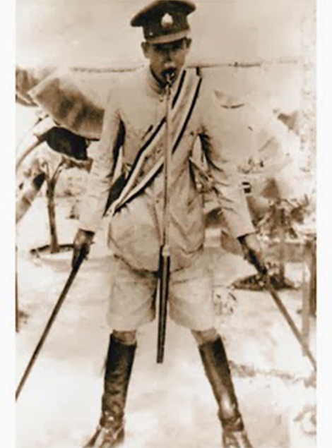 Vì binh sĩ quá đông, ông dùng dao nhọn đâm vài lỗ thủng trên gương mặt, lấy máu phun vào vải rồi phân phát cho các binh sĩ như một cách yểm bùa.