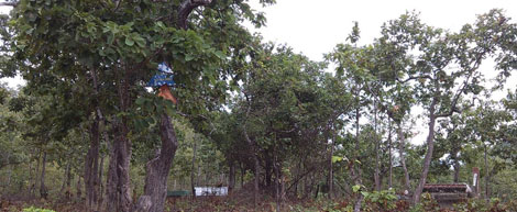 - Nhiều cây lắm, thường là cây chuối, cây mía. Có khi trồng cây đa nữa đấy!