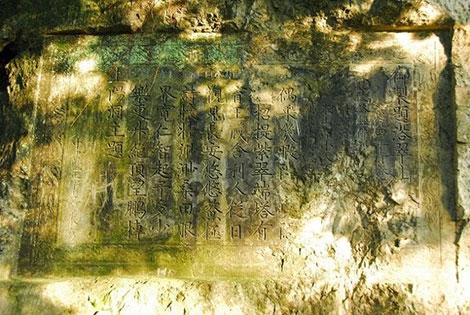 Bia đề thơ cổ do thợ Ninh Vân khắc trên núi Thúy.