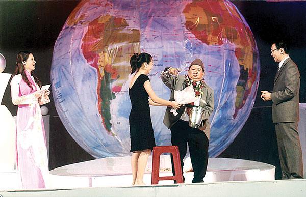 | Nghệ sĩ Mạc Can giao lưu với khán giả truyền hình. |