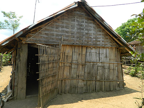 | Ngôi nhà từ những tấm phên tre cũ nát của chị Hờ Riu. |