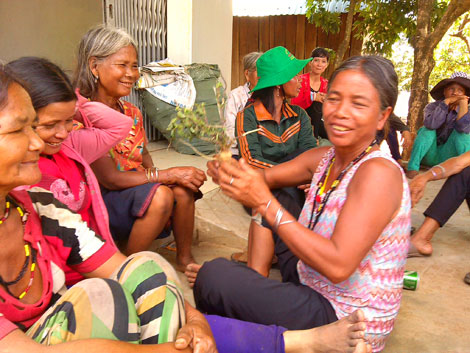 Các bà các chị cùng những cô gái bản xứ khoe sắc với những vòng tay tình yêu.