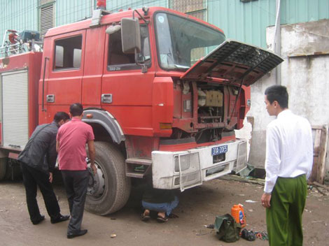 Thượng tá Nguyễn Văn Nguyện, Phó trưởng phòng dẫn chúng tôi đi xem một vòng cơ sở vật chất của Phòng Hoàn Kiếm. Qua câu chuyện được biết, trước đây đơn vị đóng tại số 5 Lê Phụng Hiểu. Từ khi chuyển về đây, tháng 10/2013, nghe bảo chỉ tạm khoảng 6 tháng, mà đến tận bây giờ vẫn "chưa thấy gì"? Người thì còn bảo trốn nóng, bỏ từ tầng 2 xuống tầng 1. Nhưng xe thì chịu. Không có nhà để xe nên tất cả đều phơi sương phơi nắng ngay rề đường. Xe chữa cháy phải bảo trì, bảo dưỡng thường xuyên. Vậy mà cứ phủ bạt ở ngoài trời thế kia, ví như nắng nóng thì còn cố được, chứ trời mưa thì không hiểu sửa chữa kiểu gì? Mưa từ trên xuống thì che được, chứ nước chảy dưới gầm, chui vào mà sửa chữa làm sao?