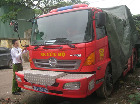 | Phòng Hoàn Kiếm, xe cứu hỏa phải đắp bạt, phơi sương gió ngày đêm. |