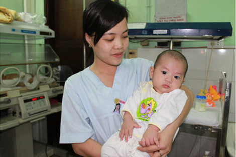 | Cháu bé mang tên Quân được giải cứu trong vụ buôn bán trẻ em của đối tượng Hải, Sang. |