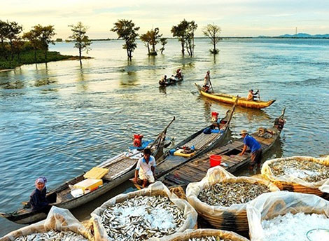 Chị Năm La, ngồi thu mua cá ngay đầu lộ, tay đeo lủng lẳng một chùm vòng si-men vàng chóe cho biết: “Năm nay được mùa lắm anh. Từ đầu lũ tới giờ mua cá mỏi tay luôn”. Nghe chị nói, tôi lại liên tưởng đến giá bán cá linh non đầu mùa tại Sài Gòn, có lúc leo lên nấc thang 180 đến 200 ngàn/kg, thì giá mua tại gốc chỉ vài chục ngàn cũng giúp cho những người như chị Lan đếm tiền “mỏi tay” rồi.