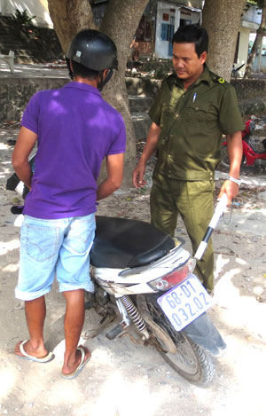 | Xử lý một thanh niên vi phạm Luật Giao thông. |