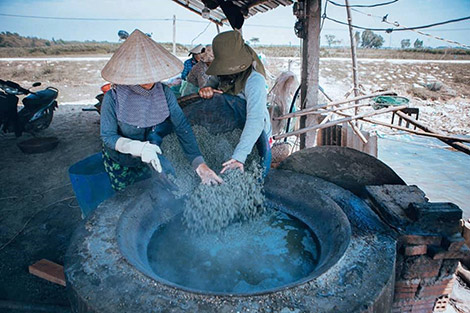 Trong cái chòi nhỏ lợp lá dừa, bên cái lò nấu hến. Sau lưng những người phụ nữ đang đãi hến, một đoạn bãi sông trải đầy vỏ, chứng tích cuộc mưu sinh nhọc nhằn dầm mình trên nắng, dưới nước của những thế hệ người dân nơi đây. Con hến chỉ nhỉnh hơn đầu ngón tay út, lại nằm dưới đáy sông nên công việc xúc hến khá vất vả, chỉ dành cho những người đàn ông.