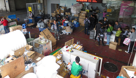 "Duyệt ngay!" - Hà cười tít mắt rồi bảo "đi theo em". Ngang một góc của một cửa hàng, tôi thấy cả chục người đang hí hoáy xếp túi xách vào những chiếc thùng các tông, cạnh đó là những chiếc thùng "mốp" đã được dán băng keo cẩn thận. Theo lời Hà, hàng trong thùng "mốp" là những loại hàng dễ vỡ như mắt kính, đồng hồ đeo tay, nước hoa, phấn son, điện thoại, máy tính bảng… Tôi hỏi nó sẽ được đưa đi đâu? Hà đáp: "Nếu hàng nhỏ gọn thì chúng em gửi xe khách Quảng Châu, Đông Hưng, tiếp theo là Móng Cái (tỉnh Quảng Ninh) hoặc Quảng Châu, Bằng Tường, sau đó qua Tân Thanh (tỉnh Lạng Sơn), còn nếu nhiều thì thuê nguyên chuyến xe tải”.