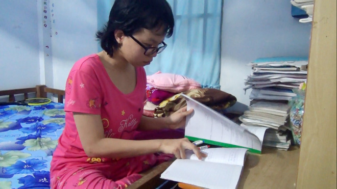 "Nghe bác sĩ thông báo cháu mắc bệnh ung thư xương, nếu không điều trị thì chỉ sống được vài tháng, vợ chồng tôi như chết lặng. Hai vợ chồng muốn bỏ hết tất cả để lo cho cháu. Lúc đó cháu đang học lớp 11. Điều trị được hơn 1 tháng, cháu bảo hóa trị xong sẽ về học lại...", chị Thủy nấc nghẹn không nói hết câu.
