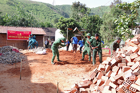 | Bộ đội Biên phòng tỉnh Kon Tum xây dựng nhà tình nghĩa cho hộ nghèo ở khu vực biên giới tỉnh. |