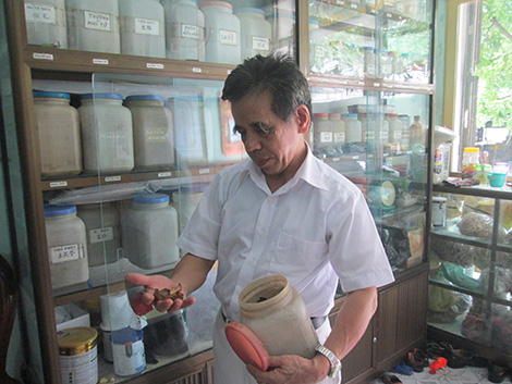 | Lương y Đinh Tự Khuyên tại cơ sở khám chữa bệnh đông y của ông. |