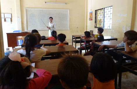 Vào giờ thầy Châu đứng lớp, trong tổng số 22/36 em đến học chữ nuôi hy vọng tương lai, như lớp học cơ hàn của cô giáo Ái ngày nào, tôi thấy có em áo rách bươm, có em đi chân trần, có em đầu tóc vàng hoe, cháy nắng, gầy guộc và có những em, 14-15 tuổi nhưng bé choắt như trẻ lên 10. "Ở đây các em thiếu thốn nhiều thứ lắm, thiệt thòi đủ điều. Ở đâu không biết chứ ở đây, có được chiếc áo trắng tinh, có bộ sách giáo khoa cấp 1, có được tập vở, bút viết… là cả một trời mơ ước với không chỉ các em, cha mẹ các em và với cả thầy".