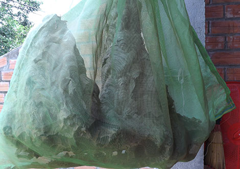 | Phần chóp của tổ ong mặt cọp 16 tầng bắt ở Bình Phước được ông Tám Lộc giữ lại làm kỷ niệm. |