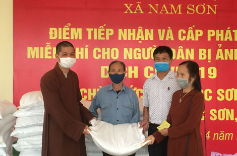 | Gạo được chia tận tay người nghèo ở xã Nam Sơn. |