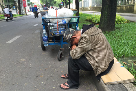 Mỗi sáng, tại góc Nguyễn Du - Thủ Khoa Huân thuộc phường Bến Thành, Q.1, TP Hồ Chí Minh, người ta đã quá quen thuộc với cảnh một ông già chuyên... ngủ ngày bên cạnh chiếc xe đẩy phế liệu. Ông già này bị điếc khá nặng. Ông tên là Phạm Công Thiên, năm nay 81 tuổi, ngụ ở huyện Bình Chánh. Ở tuổi xưa nay hiếm, mỗi sáng ông lại đạp xe hơn chục cây số để lên trung tâm đi tìm những đồ thừa thãi.